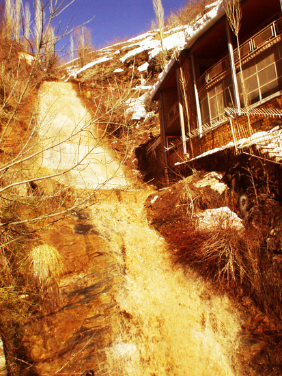 A villa with a dynamic shade out of waterfall.