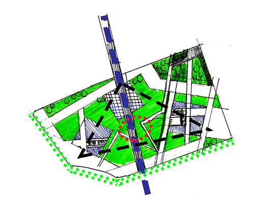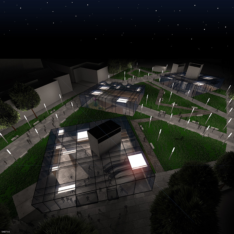 Three glass boxes have placed in the site in the way that with existing green mass in the south and west, it has produced an active point in the middle of site which can turn to a dynamic urban space with which visual and physical connection to the Multipurpose Hall, improves the quality and flexibility of activities.